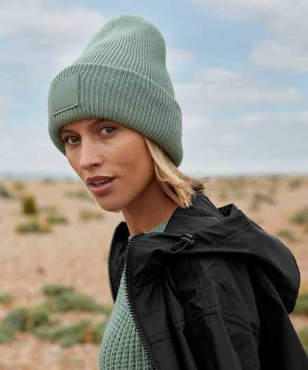 Een Beechfield signature beanie, de veelzijdige B336R, maakt elke casual look compleet. De ontworpen kroon zorgt voor maximaal comfort, terwijl een tricot in dubbele laag en een oversized opgerolde rand optimale warmte bieden. Kenmerken zijn een ribtricot en een ton-sur-ton vierkant patch. De perfecte plek om een statement te maken. De B336R bevat gecertificeerd gerecycled polyester.