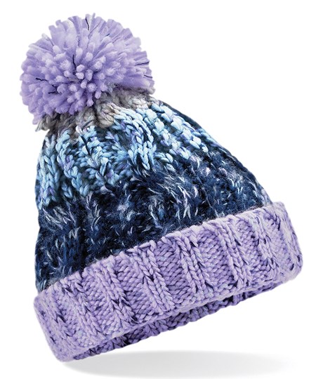 Val op met deze corkscrew pompom-beanie! Hij is geïnspireerd door de natuur met regenboogtinten en fleurt daardoor iedere mini-me garderobe op. Deze opvallende muts heeft een luxueuze lamswollen band en geeft op iedere koude dag een ultiem knus gevoel.