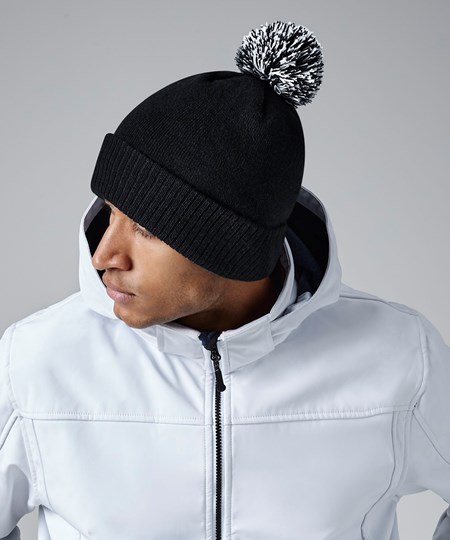 Door de duurzame en stijlvolle B450R toe te voegen aan uw wintergarderobe weet u zeker dat u nooit meer compromissen hoeft te sluiten. Deze gecertificeerde beanie is gemaakt van 100% gerecycled polyester en kan met en zonder omslag worden gedragen, waardoor het een echt veelzijdige muts wordt. De dubbellaagse gebreide structuur houdt de warmte vast en de tweekleurige pompon zorgt voor een subtiele finishing touch. Een welkome duurzame aanvulling op de populaire Snowstar®-collectie.