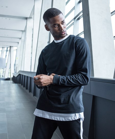 De longsleeve met geribde mouwboord is een perfect voorbeeld van de trendy streetstylelook. De comfortabele pasvorm maakt van deze longsleeve een perfecte basic terwijl klassieke details zoals een ronde hals en de brede ribboorden aan de mouwen de sportieve stijl accentueren. Eventuele accenten zijn mogelijk via zeef- of flexdruk.