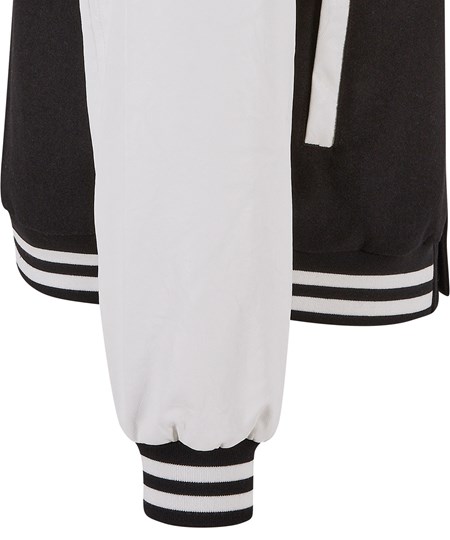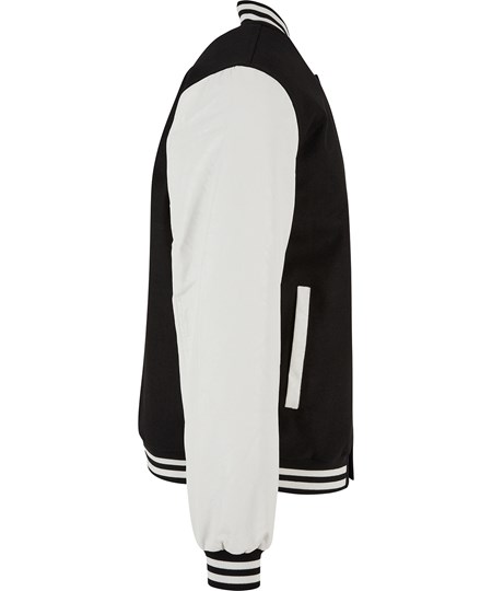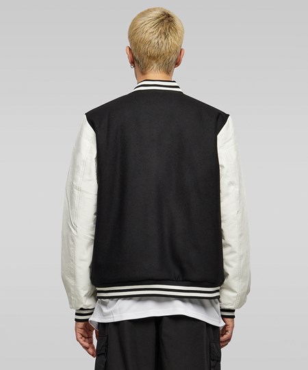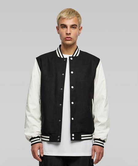 Uitgerust met contrasterende mouwen, straalt dit college jack voor heren retro vibes uit. Klassieke details zoals een drukknoopsluiting, gestreepte opstaande kraag, zoom en manchetten maken de look compleet. Het ontwerp wordt afgerond met zijzakken met kleuraccenten en geribbelde manchetten. De stof bestaat uit wol en viscose om comfort te garanderen in deze normale snit. De jas kan verder worden verfijnd door middel van borduursels.