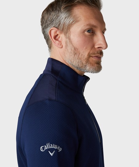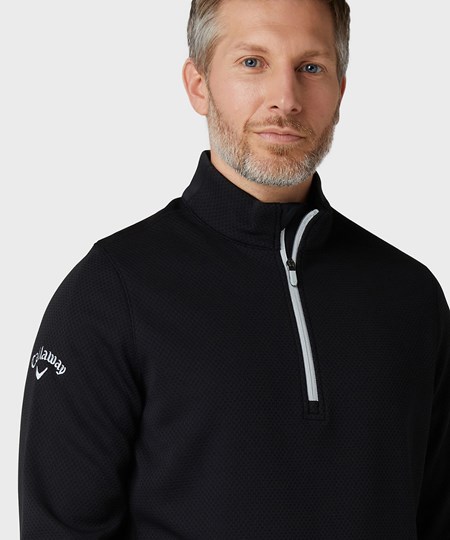 1/4-ritsfleece met hex-patroon en een verstelbare zoom met trekkoord, plus Callaway Tour-logo op de rechtermouw. OPTI-DRI™ voert vocht van uw lichaam af om u koel en droog te houden.