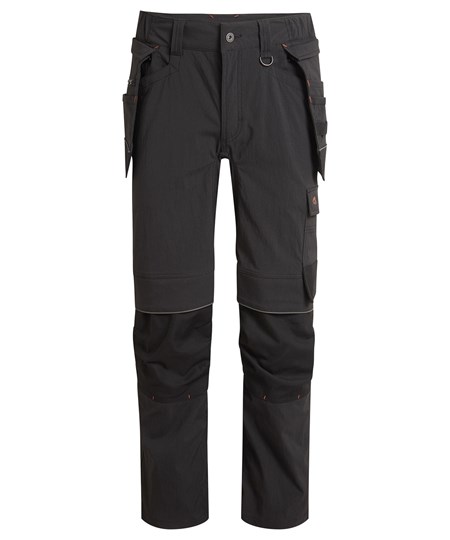 De ultieme werkbroek. Deze broek is gemaakt van zonwerend stretchpolyamide met een H2OShield DWR-afwerking en geurbestrijdende patches, en daardoor ontworpen voor comfort en duurzaamheid. Met verwijderbaar multi-pocket holster en gelede knieën met Cordura®-verstevigde panelen en insteekzakken op de kniestukken.