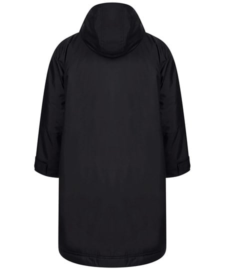 Deze ultieme teamjas is gemaakt van een waterbestendige stof met een warme sherpa-fleece voering en driedelige capuchon. De ruime pasvorm met dubbele rits aan de voorkant zorgt ervoor dat dragers warm kunnen blijven en zich onder de badjas kunnen omkleden. Perfect voor outdoor zwemmen of voor aan de zijlijn van een team. Zakken met rits en fleecevoering houden de handen warm, met meerdere binnenzakken om spullen veilig op te bergen. Afgewerkt met een grote rits voor toegang tot borduursel om direct te versieren.