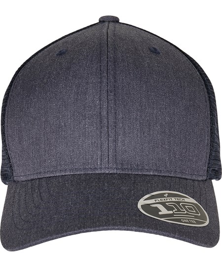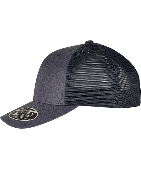Een nonchalante truckerspet met essentiële stijl. De voorpanelen zijn gemaakt van een gevlekte katoen-polyester mix en de achterkant is voorzien van transparante, robuuste mesh. Voor personalisatie heeft hij een snapbacksluiting op de achterkant, en de voorgebogen klep heeft gedetailleerde, decoratieve stiksels.