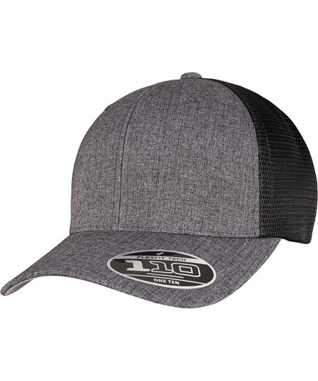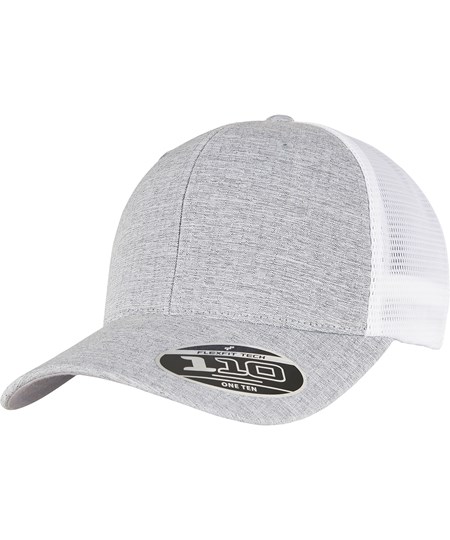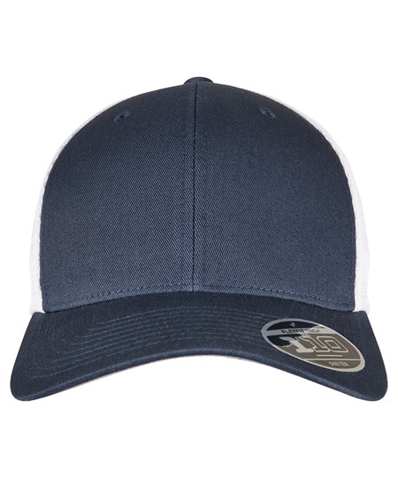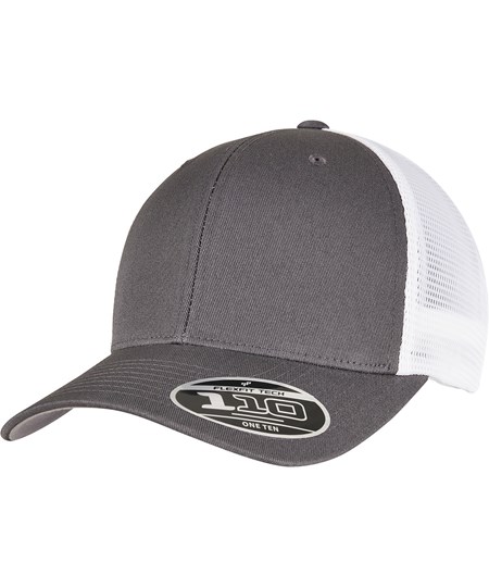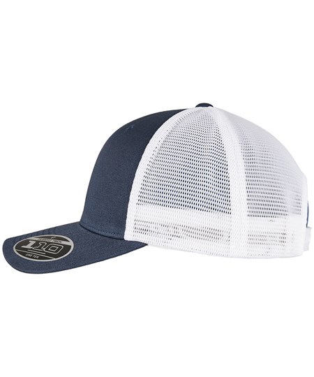 Deze truckerpet heeft een beproefd, dubbel ontwerp: de voorkant is gemaakt van katoen, de achterkant van doorzichtig, wit polyestermesh. Dankzij de slimme, geïntegreerde technologie garandeert de pet een optimaal draagcomfort: naast het Flexfit-lint staat een kleurgetrouwe snapbacksluiting klaar voor individuele maatverstelling. De truckerpetstijl wordt afgerond met een voorgebogen klep met acht siernaden.