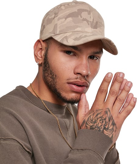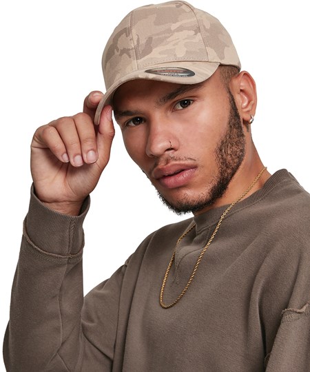 Bewezen Flexfit-vorm met trendy light-camouflagepatroon: deze moderne cap toont hoe een trendy urban style ook elegant kan zijn. De gebogen klep met sierstiksels vormt samen met een pastelkleurig camouflagepatroon een echte streetwearblikvanger. Naar buiten dus ermee!