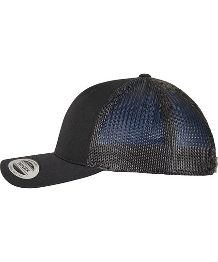 Deze stijlvolle pet biedt een authentieke truckerlook met een voorgebogen klep, een klassiek kleurontwerp in zwart en natuurlijk het kenmerkende transparante meshmateriaal aan de achterkant van het hoofd. Zowel de mesh als de twill zijn gemaakt van gerecycled polyester.