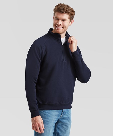 De klassieke zip neck sweater is verkrijgbaar in veel verschillende kleuren met een weggewerkte metalen rits voor verbeterde bedrukbaarheid en is dus ideaal voor allerlei vormen van kledingdecoratie. Details zijn onder andere een enkele Jersey bies op de halslijn voor draagcomfort en afwerking met katoenen/Lycra® tailleband en manchetten voor extra warmte.