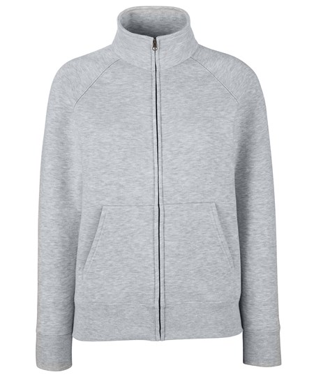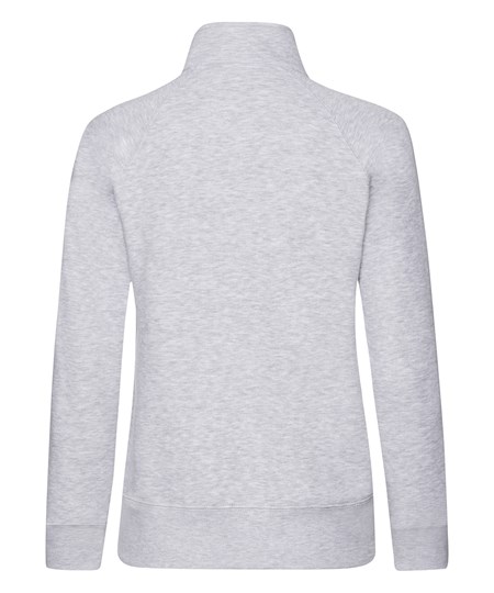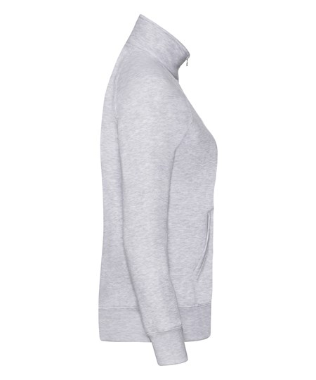 De dames Premium sweater is ideaal voor promoties, merchandise voor de muziekindustrie, licentiëring, toerisme en meer, en heeft een 100% katoenen buitenkant en weggewerkte metalen rits voor een verbeterde bedrukbaarheid. Dit vrouwelijke kledingstuk heeft twee zakken aan de voorkant voor flexibel gebruik en een halslijn met een enkele Jersey bies voor draagcomfort, terwijl de opstaande kraag en de afwerking met een katoenen/elastische tailleband en manchetten zorgen voor dagelijks draagcomfort en extra warmte.