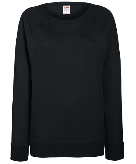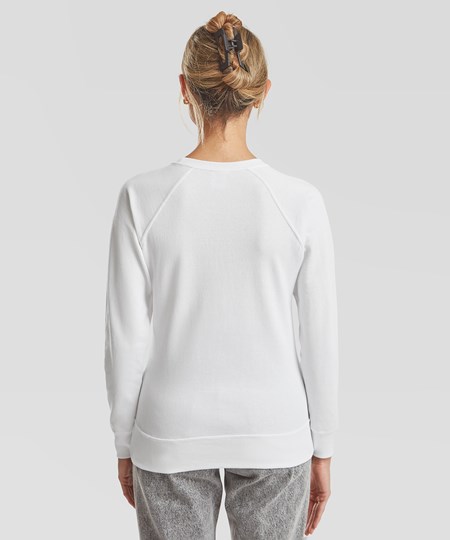 De dames lichte raglan sweater is gemaakt van lichtgewicht ongeborsteld fleece met voorgevormde zijnaden voor een vrouwelijke pasvorm en is dus perfect voor het dragen van lagen, met een 100% katoenen buitenkant die zorgt voor een perfecte bedrukbaarheid en borduurresultaten. De dames lichte raglan sweater van Fruit is verkrijgbaar in een groot aantal kleuren en inclusief raglan mouwen, afgewerkt met een katoenen/Lycra® halslijn, taille en manchetten.
