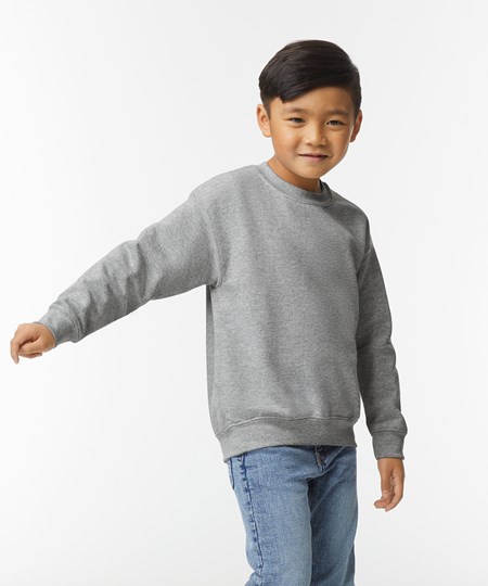 Als ze het zelf zouden mogen beslissen, zouden kinderen hun sweatshirt nooit meer uit willen doen - speciaal als het gaat om die van Gildan® Heavy Blend met een ronde hals. Het is gemaakt van een kwalitatief hoogwaardig polyester- en katoenmengsel Details zoals de versterkte schouders en de ribgebreide manchetten en taille houden dit sweatshirt in zijn vorm tijdens de energieke activiteiten van kinderen.