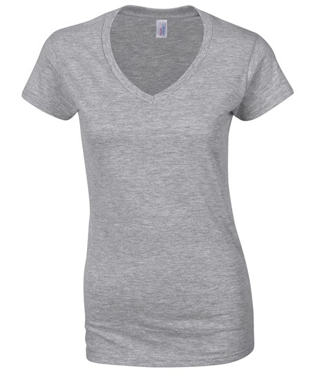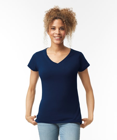 Met dit bijgesneden, vrouwelijke t-shirt met v-hals zul je indruk maken, dankzij de kwaliteit die al vanaf de eerste blik zichtbaar is. De jerseystof van premium ringgesponnen garen voelt zeer zacht aan, valt soepel, en heeft een glad oppervlak dat geschikt is voor verfraaiing.