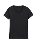 Met dit bijgesneden, vrouwelijke t-shirt met v-hals zul je indruk maken, dankzij de kwaliteit die al vanaf de eerste blik zichtbaar is. De jerseystof van premium ringgesponnen garen voelt zeer zacht aan, valt soepel, en heeft een glad oppervlak dat geschikt is voor verfraaiing.
