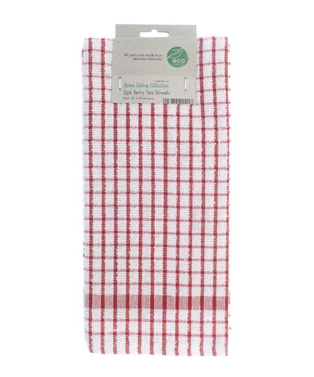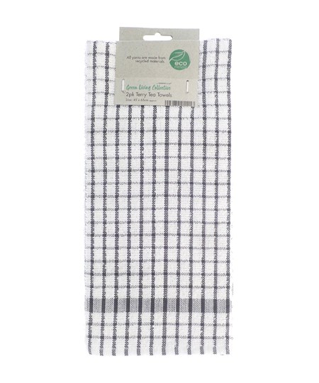 Dubbelpak van badstof theedoeken – alle garens zijn gemaakt van gerecyclede materialen. Zacht, absorberend en met een geruit ontwerp.