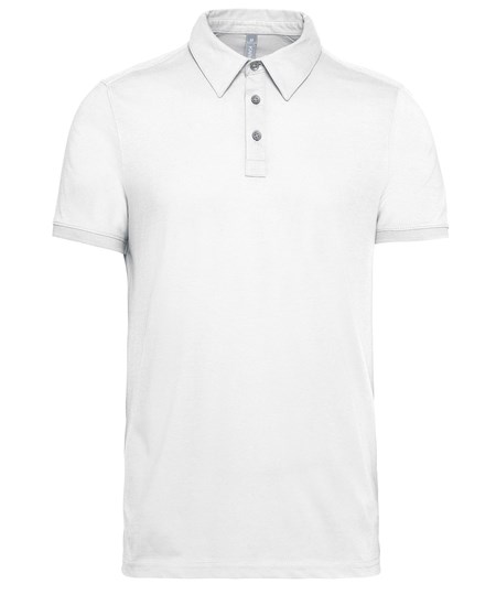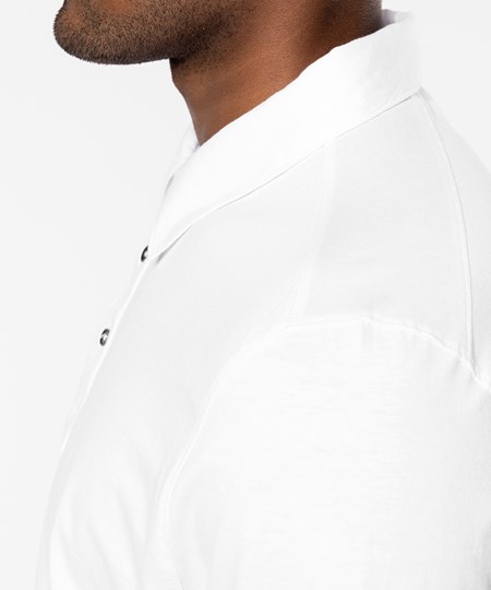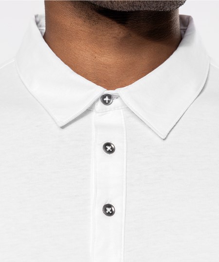 Dit stijlvolle, klassieke jersey poloshirt heeft een verzorgde afwerking en trendy details, met zijn sluiting met drie metalen knopen en overhemdkraag.