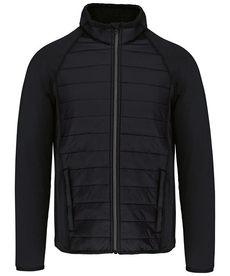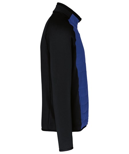 Buitenkant: body 100% ripstop polyamide, mouwen en rug 90% polyester / 10% elasthan. Binnenvoering 100% polyester. Comfortabele stof met waterafstotende behandeling. 2 ritszakken aan de voorkant. Contrasterende ritssluiting. Elastische bies aan hals, mouwuiteinden en onderkant.