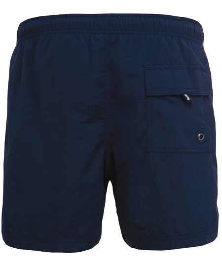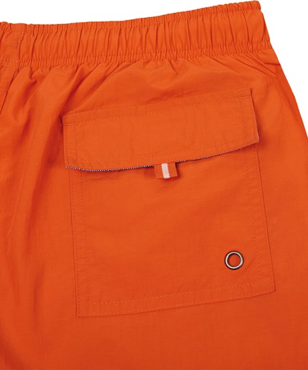 Buitenkant: 100% polyamide 105 g/m². Ingewerkte slip in mesh van 100% polyester 65 g/m². maatband van polykatoen 80 g/m². Lichte en sneldrogende stof. Modieuze snit. 2 zijzakken en 1 achterzak met verluchtingsgaatje, klep en klittenband. Binnenin een elastische fantasie-maatband met aanrijgkoordjes.