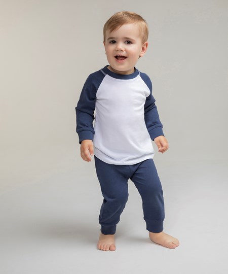 Deze trendy kinderpyjama heeft retro contrasterende mouwen en halslijn. Het product is gemaakt van de zachtste katoenen stoffen en is etiketloos voor ruime rebranding-/decoratiemogelijkheden.