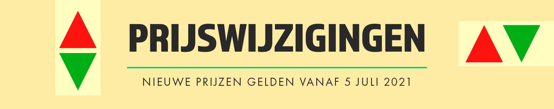 Prijswijzigingen worden toegepast op maandag 5 Juli 2021.