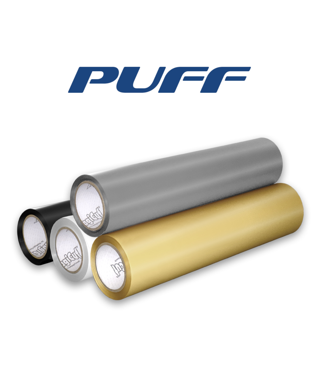 MagiCut® Puff PU hitteoverdrachtvinyl (Flex). Verkrijgbaar in 4 kleuren. MagiCut® Puff is het absoluut perfecte HTV om wolkachtige 3D-designs te maken met slechts één laag HTV.