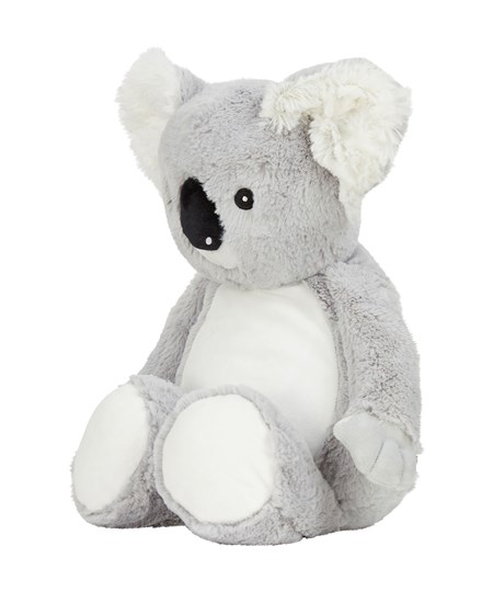 De Koalabeer is het perfecte knuffeldier, hij lijkt zo uit het bos te komen met zijn contrasterende pluizige oren, neus en voetjes. De buik is vlak gemaakt en daardoor perfect voor een geborduurde of gedrukte decoratie.