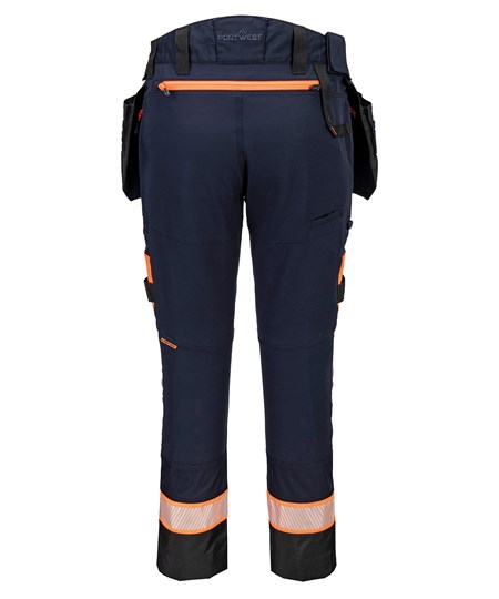 DX4 Uitneembare broek met holsterzakken is ergonomisch ontworpen en maakt gebruik van de gerichte plaatsing van dynamische 4X stretchstoffen om maximale bewegingsvrijheid te bieden tijdens het werken. Ze hebben een hoge tailleband aan de achterkant met elastiek aan de zijkant, die zorgt voor bescherming in alle werkposities, en voorgebogen, verstelbare kniebeschermerzakken aan de bovenkant. Ruime voorzakken en multifunctionele dijbeenzakken met rits bieden veilige opslag van telefoon, pennen en gereedschap. Ze zijn overal drievoudig gestikt, voor maximale duurzaamheid.