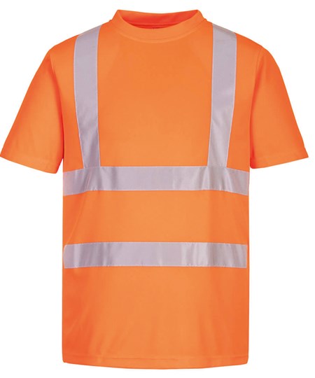 Hi-Vis T-shirt gemaakt van 100% gerecycled polyester. Lichtgewicht, met verbeterde slanke pasvorm en een tape-opening van 4 cm op de zijnaden, waardoor het kledingstuk kan worden uitgerekt en de drager maximaal comfort krijgt. EN ISO 20471 Klasse 2. RIS 3279 TOM Issue 2 (Alleen Oranje). ANSI/ISEA 107 TYPE R KLASSE 2.