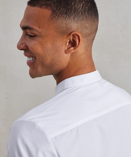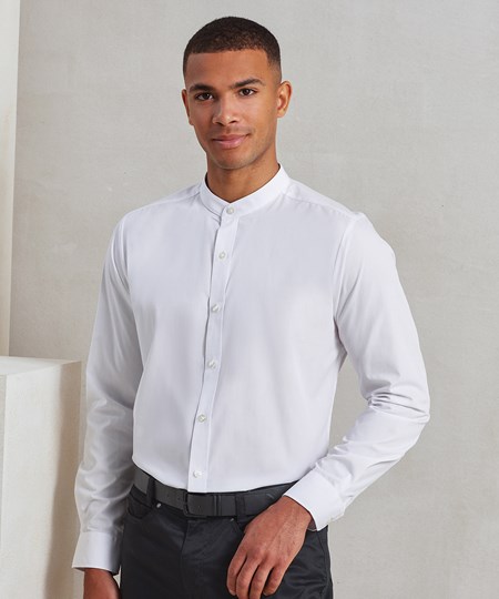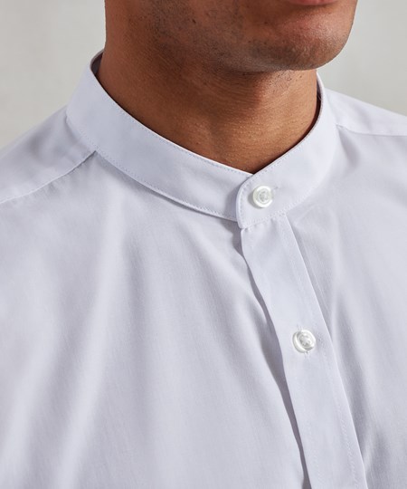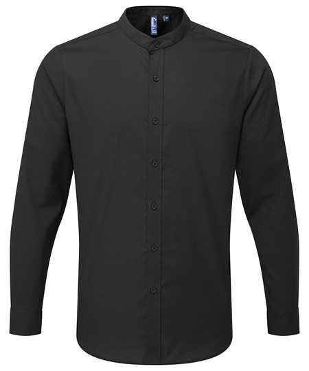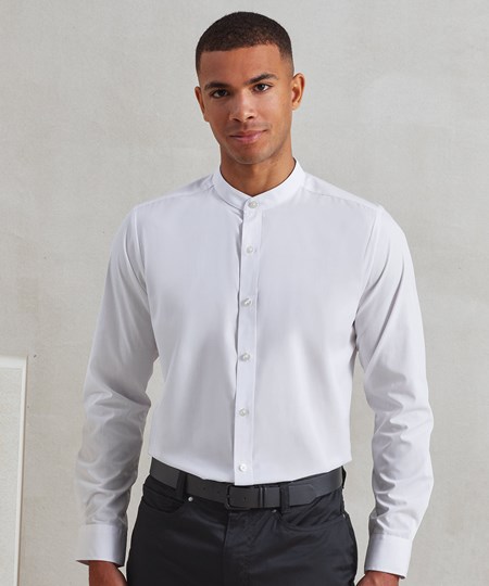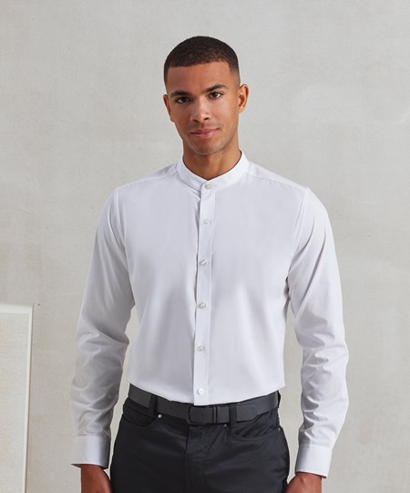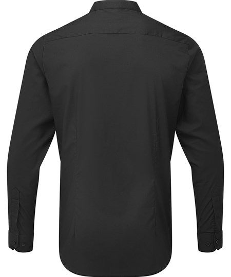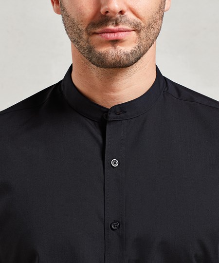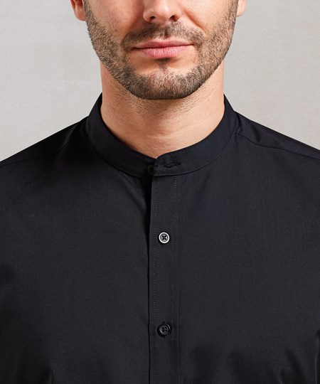 Dit iconische overhemd is een welkome aanvulling op de Hospitalitywear collectie en een populaire stijl voor bedienend personeel. De opvallende hals heeft een smalle stoffen band rond de hals die aan de voorkant met een knoop gesloten wordt. Dubbele manchetknopen en mouwophouder voor een casual uitstraling. De stijl is unisex zodat dit trendy, maar tijdloze kledingstuk door het hele team gedragen kan worden.