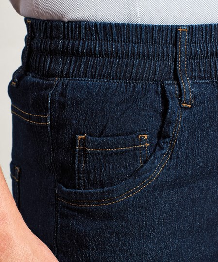 Een zeer comfortabele koksbroek van joggingstof met een klassieke enkelboord. Makkelijk aan te trekken met een elastische tailleband en een aantrekkoord. Met een opgestikte vals gulp en losse zakken. Twee handige opgestikte achterzakken. De stof met een hoog katoengehalte maakt dit tot een zachte en comfortabele broek voor keukenmedewerkers.