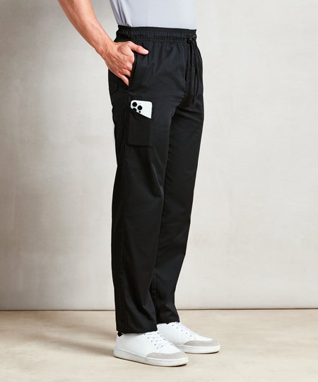Een topoplossing voor de chef en zijn team. Deze broek sluit nauwer aan op het been, maar is nog steeds comfortabel voor lange shiften. Met een handige zak op het rechterbeen en een opgezette achterzak. Sluiting met een rits en trekkoord en afgewerkt met een elastische taille.