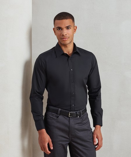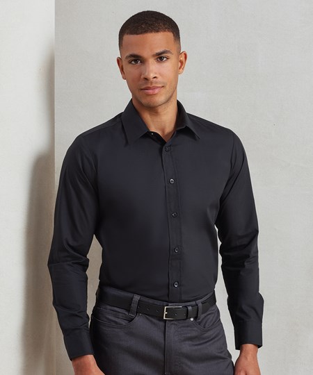 Een hemd met lange mouwen en een modieus aansluitend model voor de moderne werkplek. Dit hemd wordt geleverd met een optionele borstzak voor bevestiging, indien nodig. Een stijve, formele kraag met dubbele knopen aan de manchet. Verkrijgbaar in de best verkopende kleuren uit de kleurencollectie van Premier.