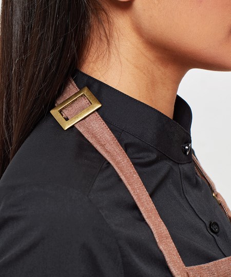 Een verbluffende denim schort gemaakt van 100% gecertificeerd biologisch Fairtrade katoen. Twee handige opgestikte zakken zijn afgewerkt met contrasterende stikdetails en de totale lengte van de schort kan worden aangepast met een gesp op de nekband.