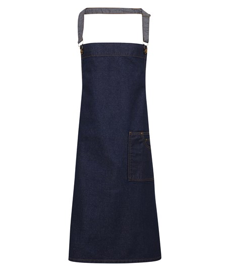 District waxed-look denim bib apron