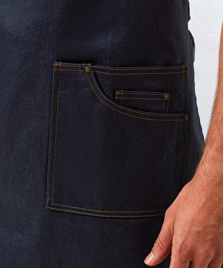 Een slabschort boordevol stijlaccenten die afgeleid zijn van jouw favoriete spijkerbroek! Een extra grote opgestikte zak, die ruim genoeg is voor een tablet, met stijlvolle klassieke zakstiksels. Het gewaxte effect zorgt voor een stoere, duurzame look met een industrieel-chique gevoel dat het interieur van vele hedendaagse restaurants weerspiegelt.