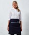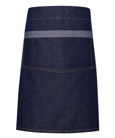 Dit halflange schort is een eigenzinnige toevoeging aan het denimassortiment en geeft een ‘industrieel-chique touch’ aan de bediening met grote metalen ogen die de maatbanden op hun plaats houden. De schaduw aan de onderzijde zorgt voor een contrasterende boordversiering op de zak en banden en een prachtig omkeerbaar effect.