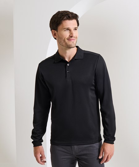 Een poloshirt voor heren met lange mouwen met paneeldetails voor een meer aansluitende pasvorm. Een stijlvolle gebreide kraag en drieknoopsluiting aan de hals zorgen voor een moderne werkkleding die een slim alternatief is voor een hemd. De mouwen zijn afgewerkt met geribde manchetten van 5 cm voor een stijlvolle look. Deze polo is ontworpen om vocht af te voeren van het lichaam en is snel droog, zodat de drager de hele dag fris blijft. Sneldrogend met een uitstekende kleurvastheid betekent dat deze polo een praktische en modieuze uniformkeuze voor heren is.