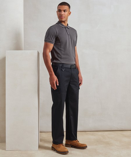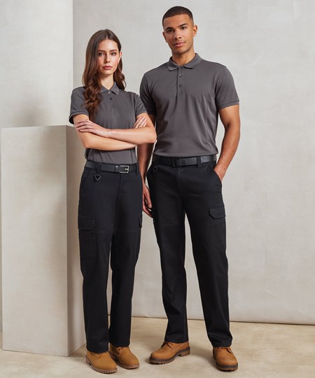 Slijtvaste en duurzame cargobroek, ontworpen met Premier's Stretchchecker-stof voor bewegingsvrijheid. Praktisch ontworpen, met meerdere zakken en een handige D-ring voor het ophangen van benodigdheden. Deze broek is een populaire keuze, gedragen door mensen in de productie-, bouw- en onderhoudssector, vanwege de slijtvaste stof. Unisex ontwerp, geschikt voor uw hele personeel. Verkrijgbaar in twee kleuren, twee beenlengtes en in een breed scala aan maten. Gemaakt van gecertificeerd gerecycled polyester.