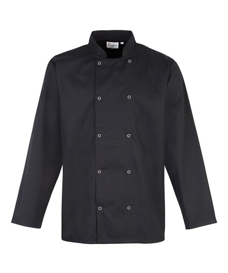 Studded front long sleeve chef's jacket