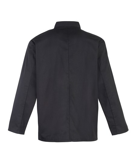 Deze koksjas met lange mouwen sluit met drukknopen en is gemakkelijk te dragen. De unisex pasvorm en zachtheid maken deze stijl tot een populaire keuze voor keukenpersoneel.