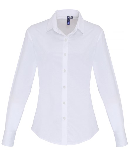 De Signature Oxford blouse van Premier met lange mouwen is gemaakt van een katoenrijke weefselstof van Oxford voor een slimme en professionele look. Deze blouse biedt de draagster een half-aansluitende stijl met figuurnaden op de borst en de rug, een ronde onderzoom en een zacht kraagdetail aan de hals voor een geweldige werkblouse voor elke dag.