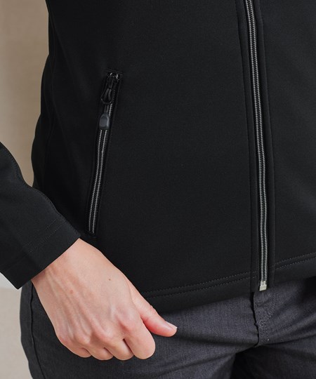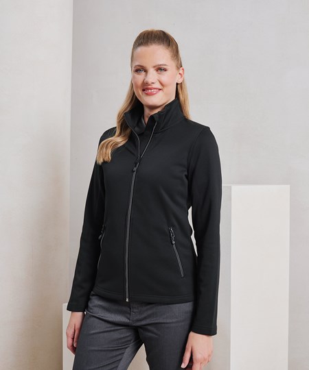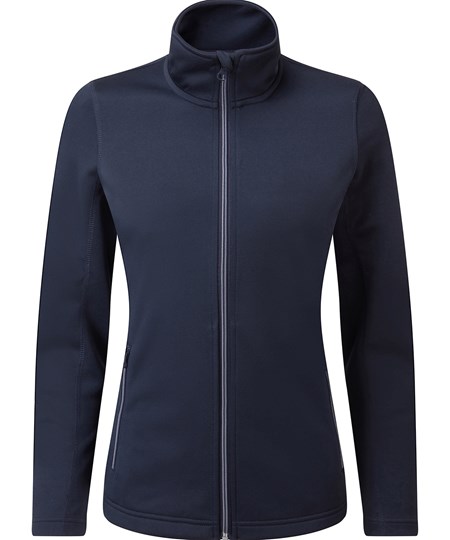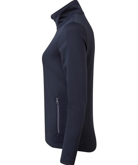 Dames sweatvest met rits, gemaakt van gesponnen geverfde gecertificeerde gerecyclede polyester garens, een stof met minder impact voor een zakelijke-casual oplossing. Gestyled met een modieuze cadetkraag en een contrasterende gekleurde rits met ritstrekker. Twee externe zijzakken hebben dezelfde ritsstijl voor een uniform uiterlijk. Afgewerkt met topstiksels voor een aantrekkelijk designelement.