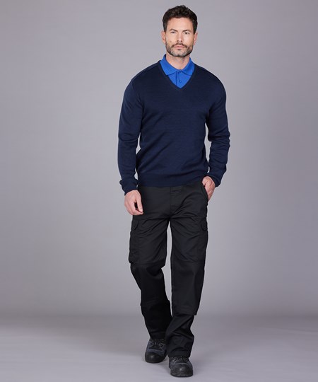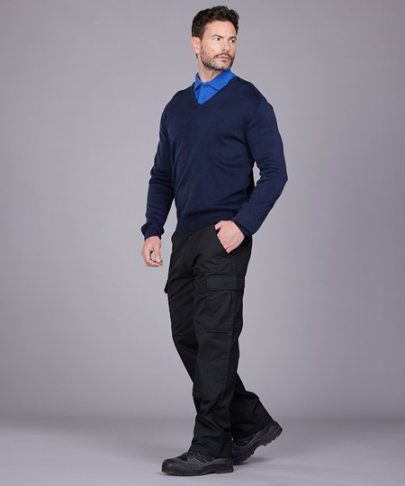 De Pro Sweater is een onmisbaar onderdeel van werkkleding. Deze stijlvolle sweater, ontworpen met een V-hals en ingezette mouwen en afgewerkt met opgezette schouderstukken voor extra duurzaamheid, is bijzonder veelzijdig en voorziet in alle behoeften op het gebied van werkkleding.