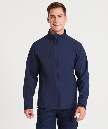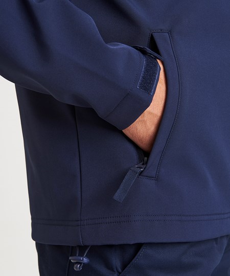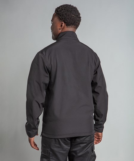 Dit drielaagse softshelljack is volledig uitgerust met drie ritszakken, verstelbare manchetten, kinbeschermer en veel meer - dus perfect voor elke werkomgeving. Dit model is gemaakt om de elementen te trotseren en houdt u warm, met bescherming tegen wind en regen.