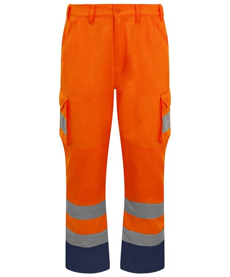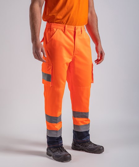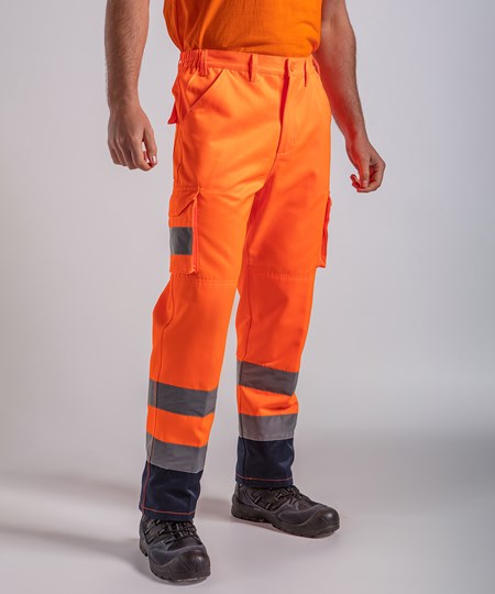 Deze werkbroek met hoge zichtbaarheid vult uw werkkleding perfect aan. Hij is gemaakt van een polykatoenmengsel met een waterafstotende afwerking. Verkrijgbaar in geel en oranje met hoge zichtbaarheid en een contrasterende marineblauwe zoom voor niveau 1 bescherming en in effen marineblauw waar minder bescherming vereist is.