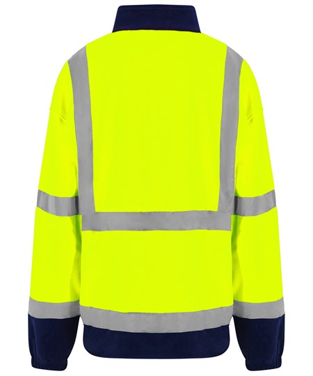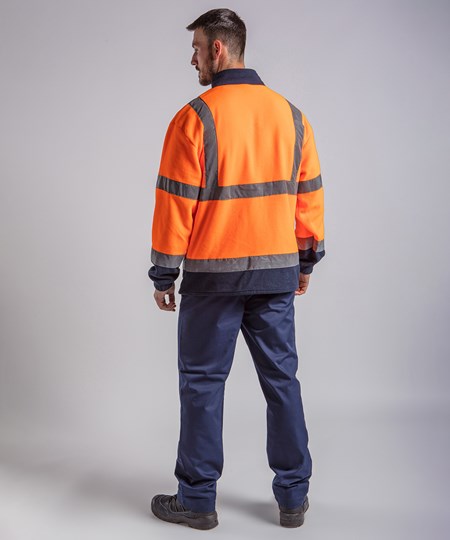 Deze fleecetrui met een rits over de volledige lengte aan de voorkant en hoge zichtbaarheid is perfect om warm te blijven en gezien te worden. De uitvoering, in oranje en geel voor hoge zichtbaarheid en marineblauw in de zones die het snelst vuil worden, maakt dit tot een stijlvol en praktisch kledingstuk dat bescherming biedt op 3 niveaus.