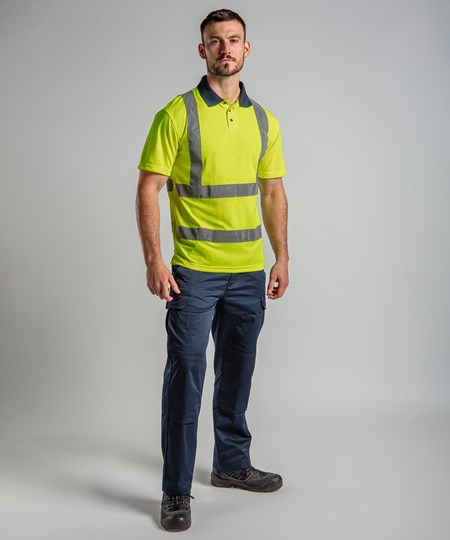 Deze polo hoge zichtbaarheid is gemaakt van lichtgewicht, ademend Birdseye polyester, met een kraag in contrasterende kleur, en een 3-knoopssluiting is het een modern en functioneel basisonderdeel van de werkkleding. De reflecterende band stopt voor de zijnaad voor een flexibele en comfortabele pasvorm en biedt toch niveau 2 bescherming.
