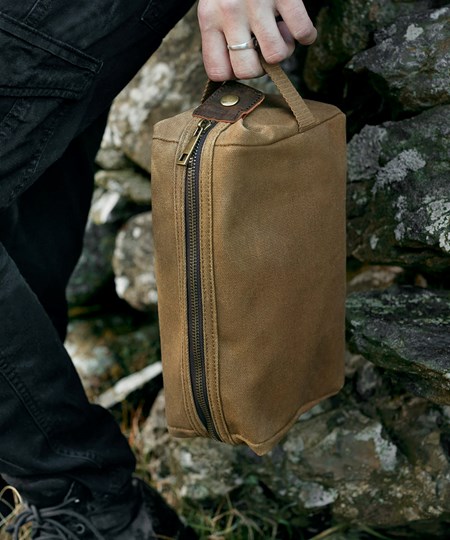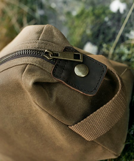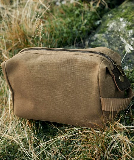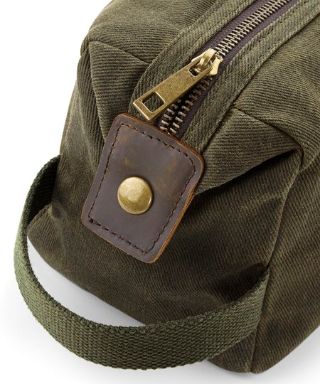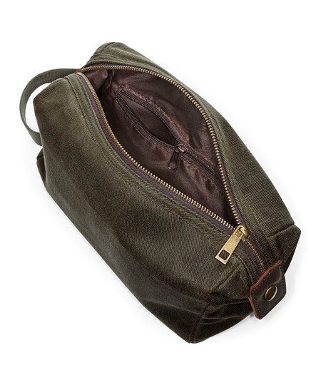 Toilettas Heritage van gewaxt canvas (QD651) is onmiskenbaar Brits, zowelitersqua stijlitersals qua vakmanschap. De zorgvuldig ontworpen vintage details, zoals de afwerking met antieke koperlook en de accenten van echt leer, maken deze toilettas tot een stijlvolle reisgenoot.