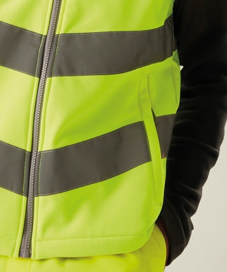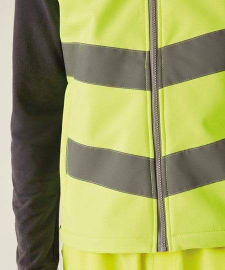 De Hi-Vis Pro Contract Ablaze softshell bodywarmer van Regatta Professional levert duurzaam comfort en gecertificeerde zichtbaarheid. Gemaakt met een warme rug van softshell-stof voldoet hij aan EN ISO 20471:2013 + A1:2016 Klasse 2. De oranje kleurstelling is conform RIS-3279-TOM. Met lage ritszakken, een kraag met fleece voering en een ritsbeschermer.