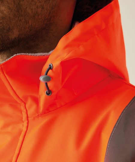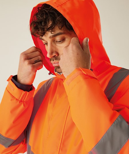 De Hi-Vis Pro Contract Dover Parka van Regatta Professional is waterdicht en biedt thermische prestaties voor veeleisende werkomgevingen. Gemaakt van waterdicht Hydrafort-polyester met Thermo-Guard isolatie. Hij is gecertificeerd voor veiligheid en afgewerkt met een afneembare capuchon.